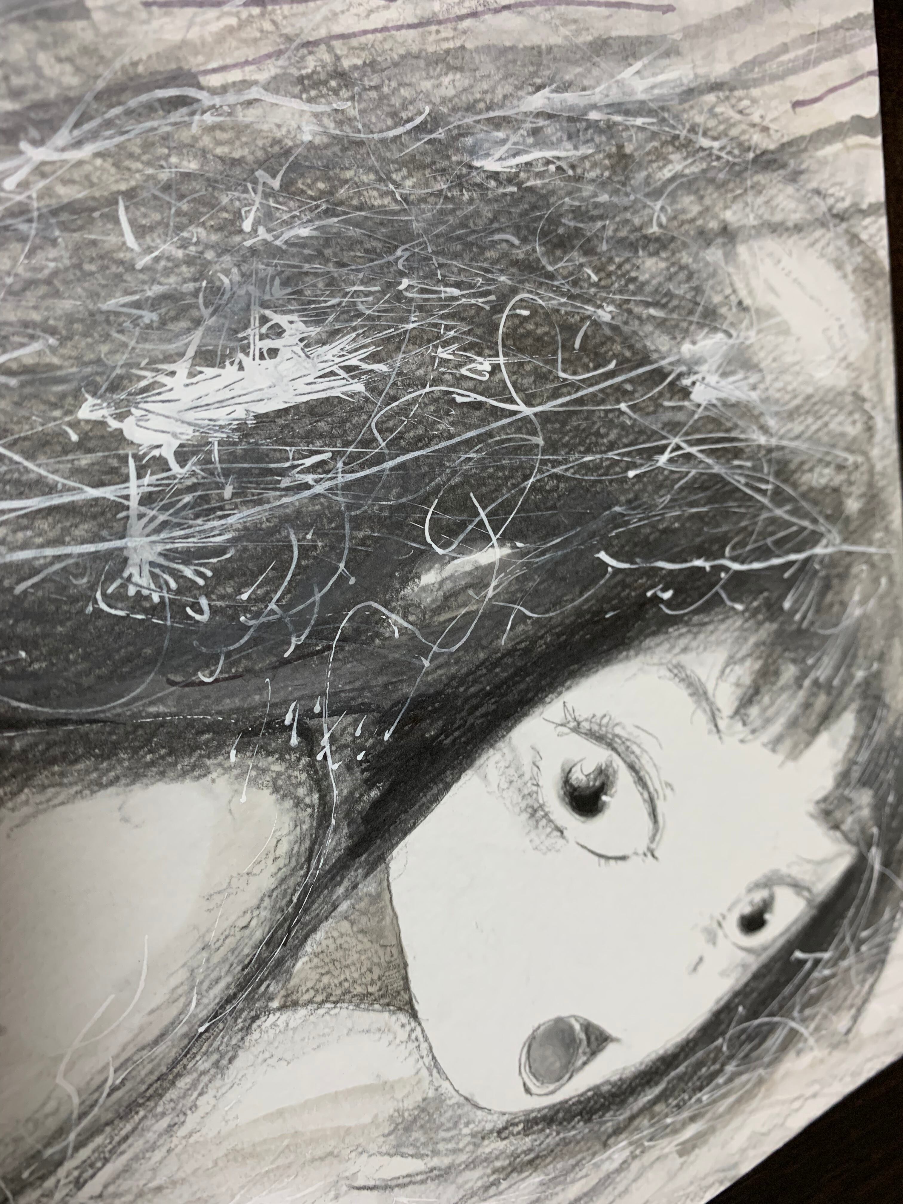 額なしの原画です。 サイズ 29.7㎝×20.9㎝ 画材 クレパス、アルコールペン、鉛筆 やる気がみなぎっている、元気はつらつガールです。