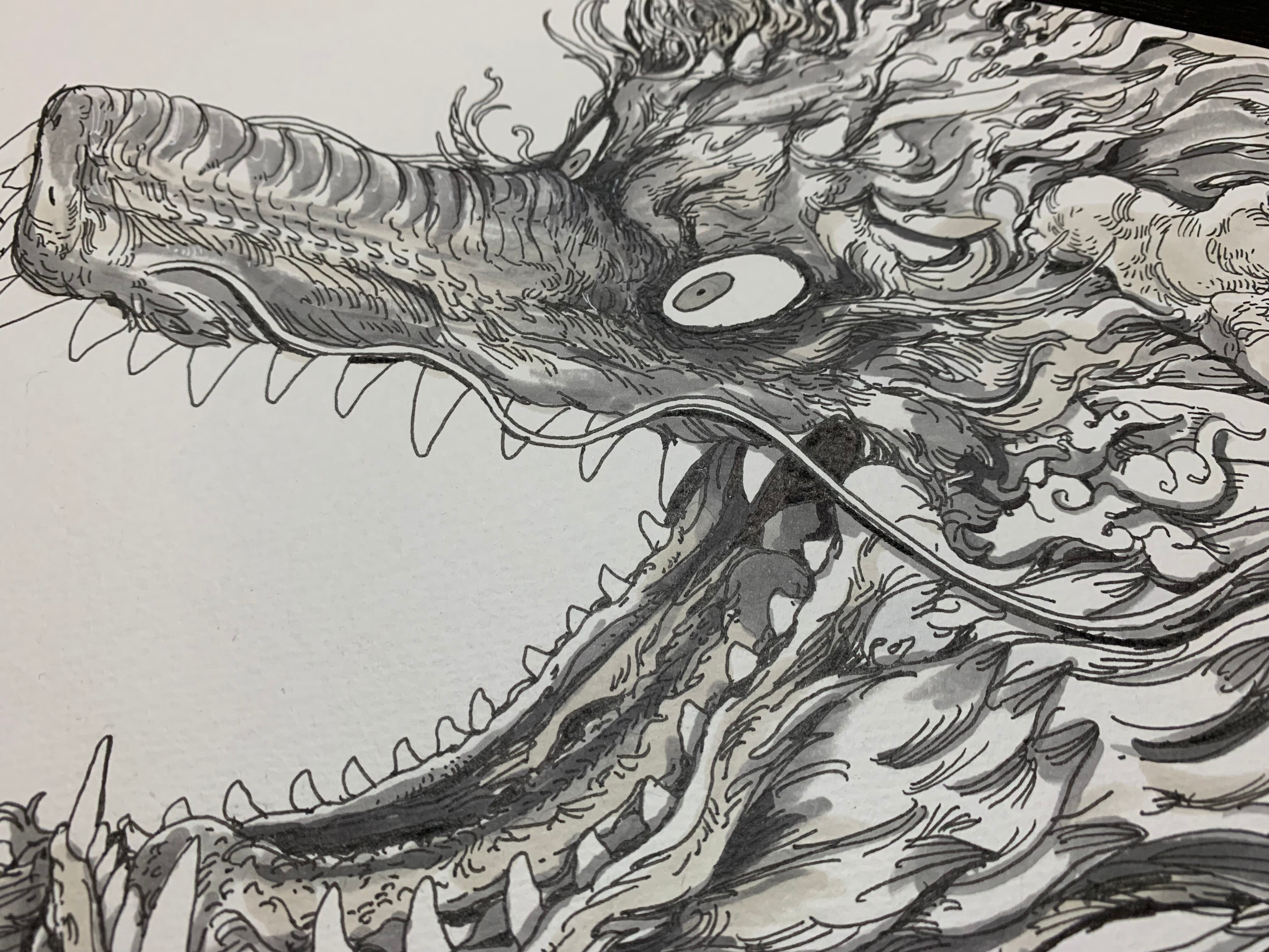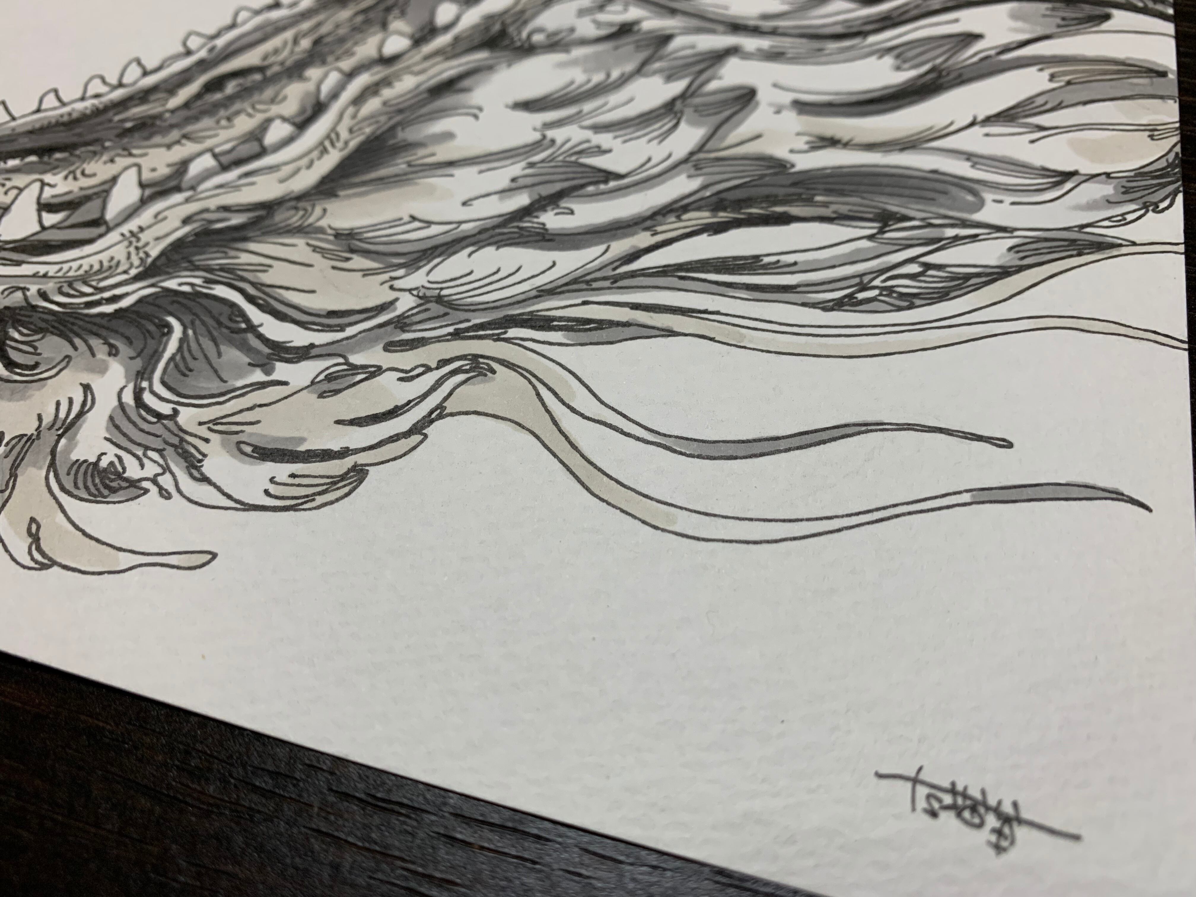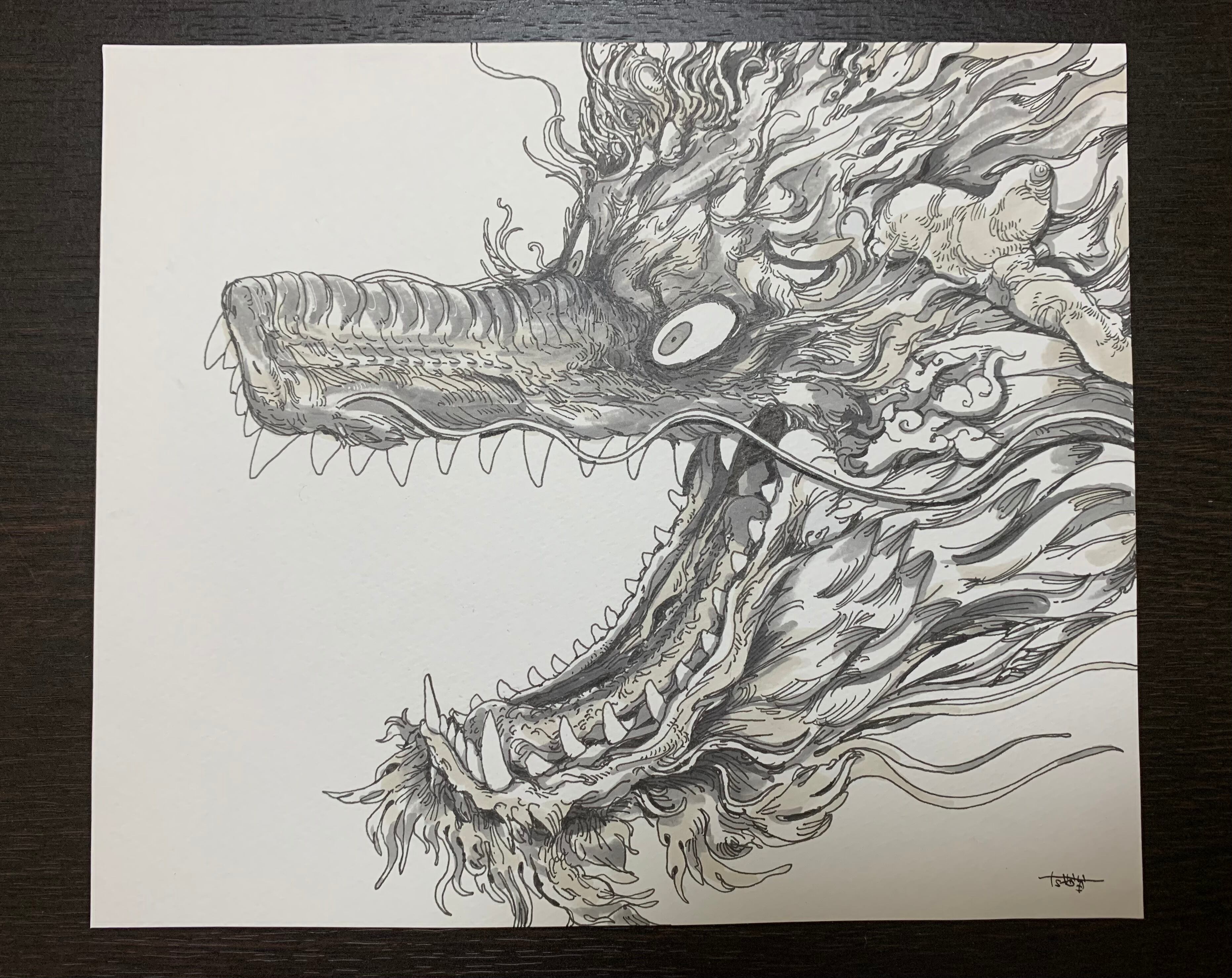 吠える龍の顔。この絵を見た人が何事にも勢いを出して進んでいけるように思いを込めて描きました。