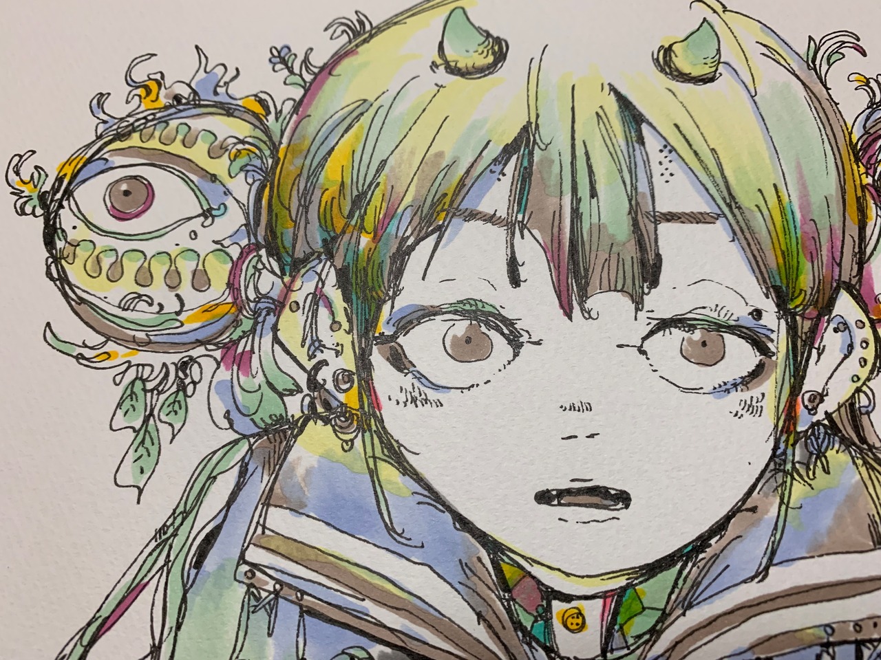 幽体型監視目玉装置を操る鬼高一年生。操りすぎてツノが成長しちゃったのがコンプレックスな思春期ガール。