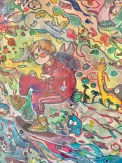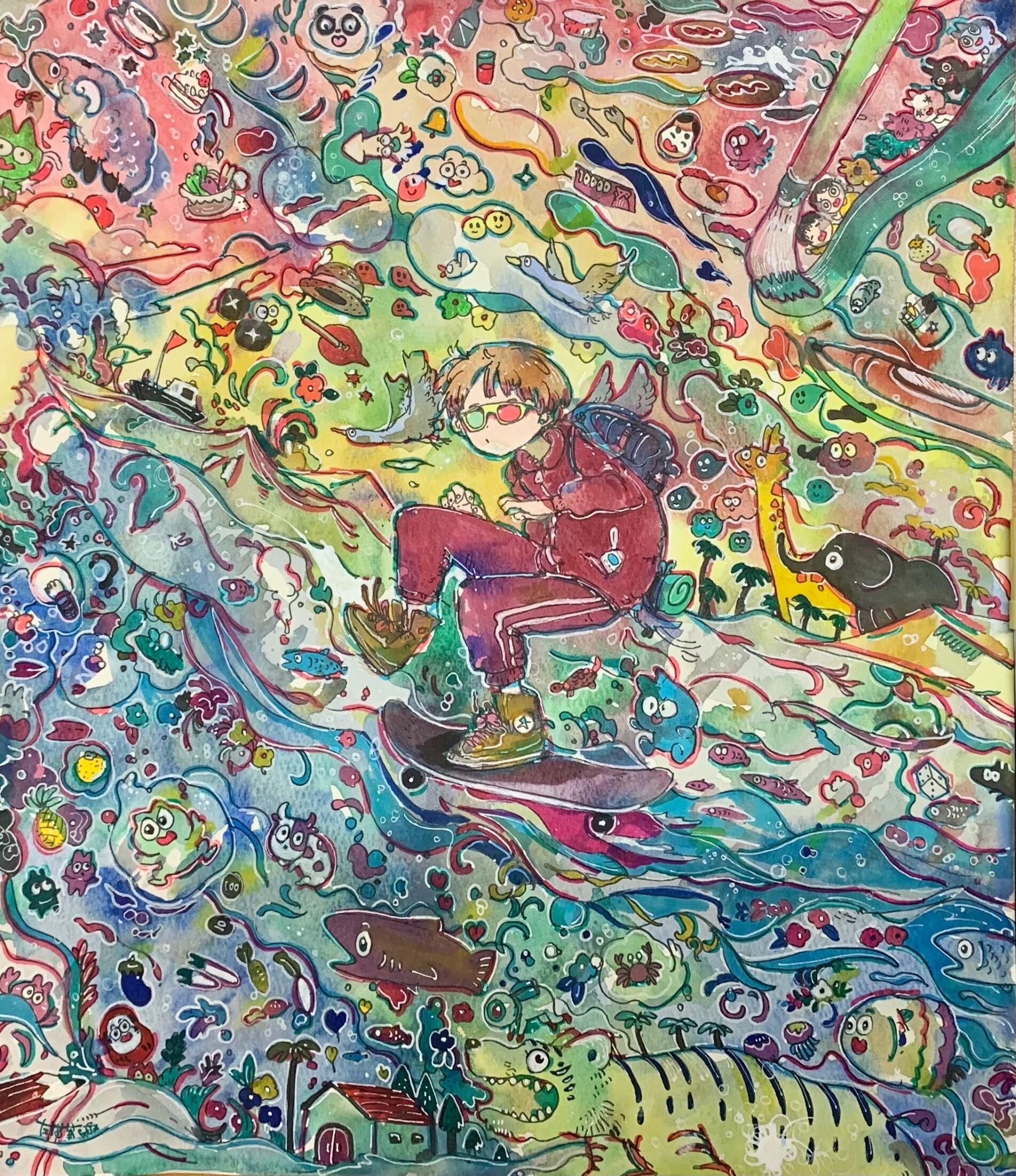 自分の好きなことに夢中になっていると、まるで夢の中をrideしているような気になったので絵にしてみました。