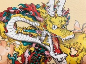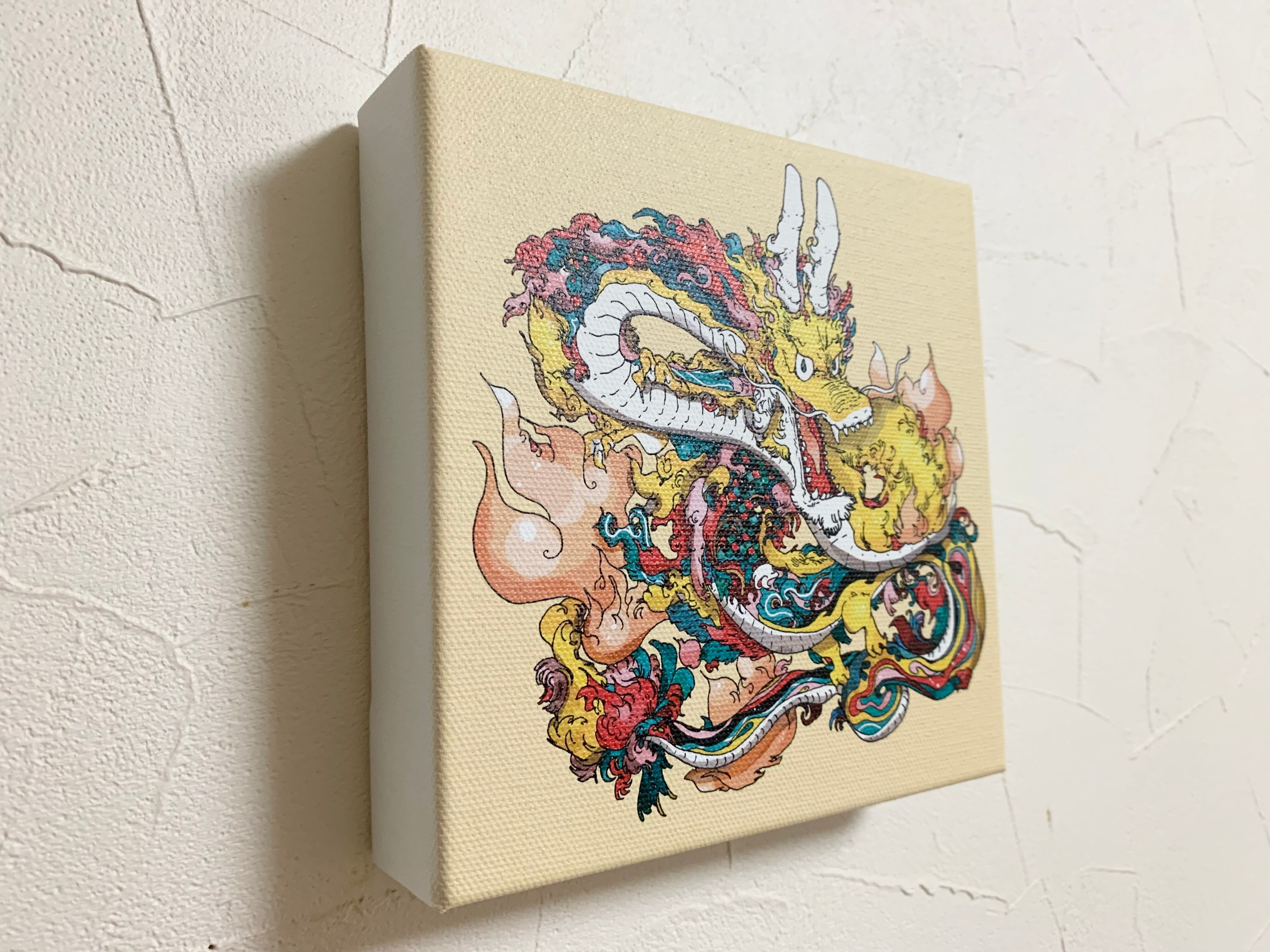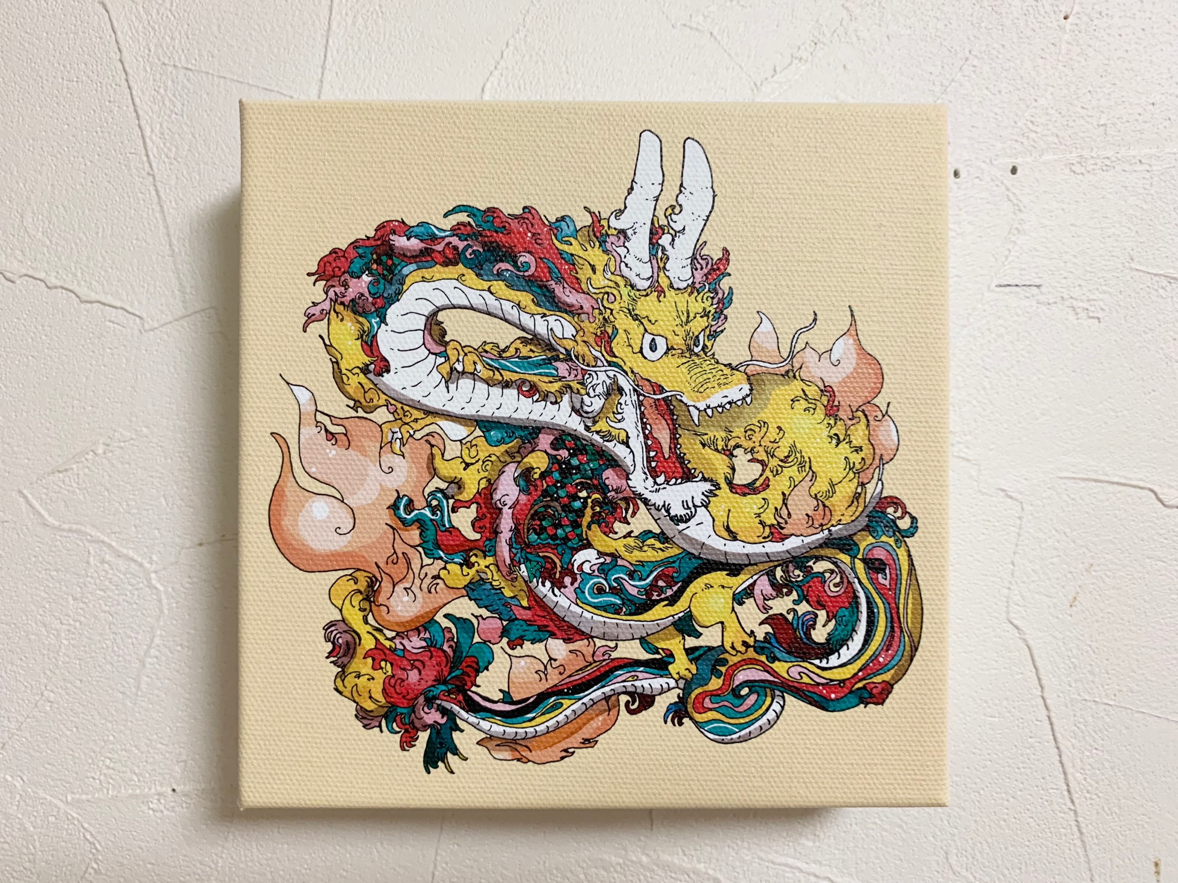 大変縁起の良い、黄竜を描きました。力強くかわいいタッチにしました。手にとってくださった方に幸がありますように!