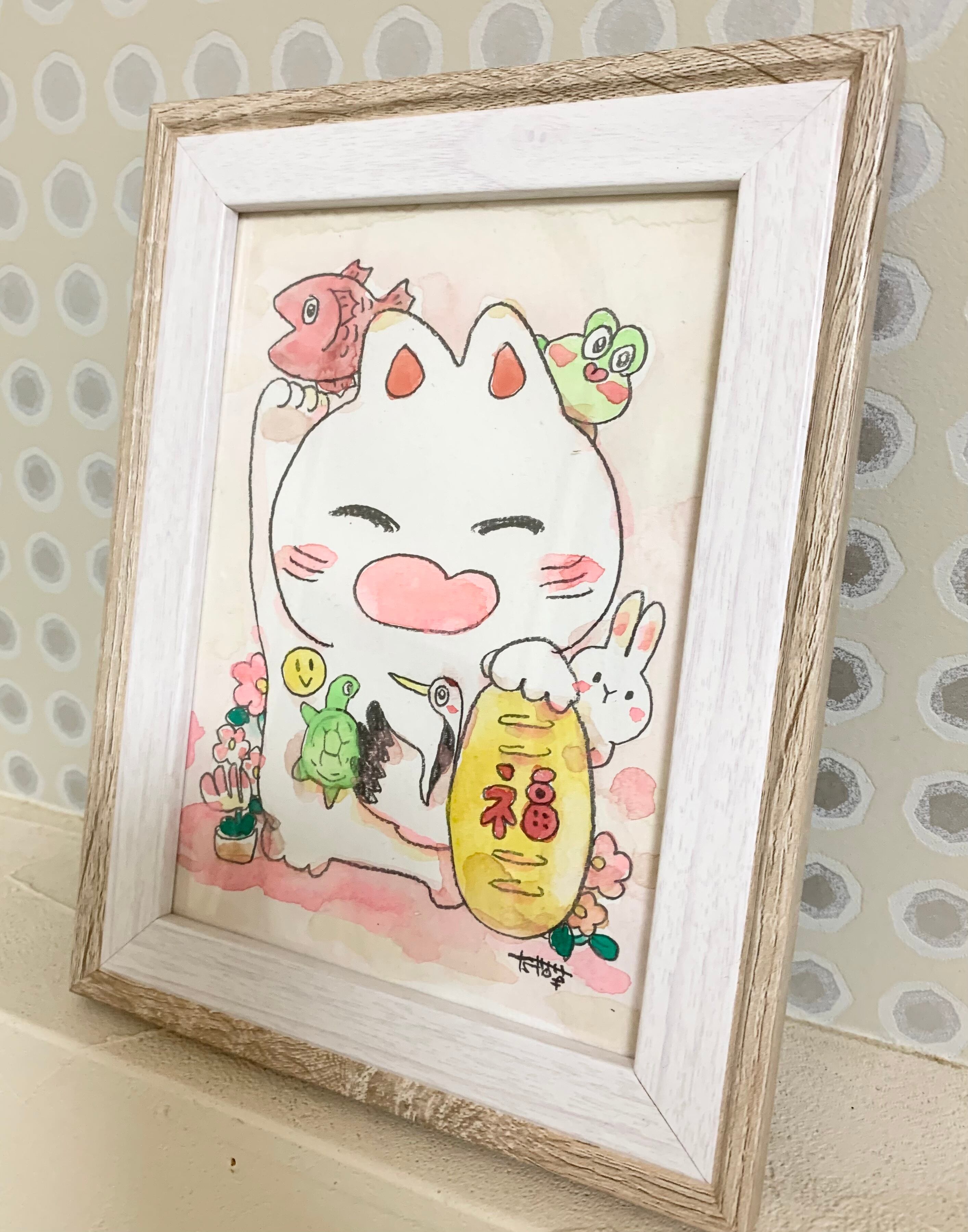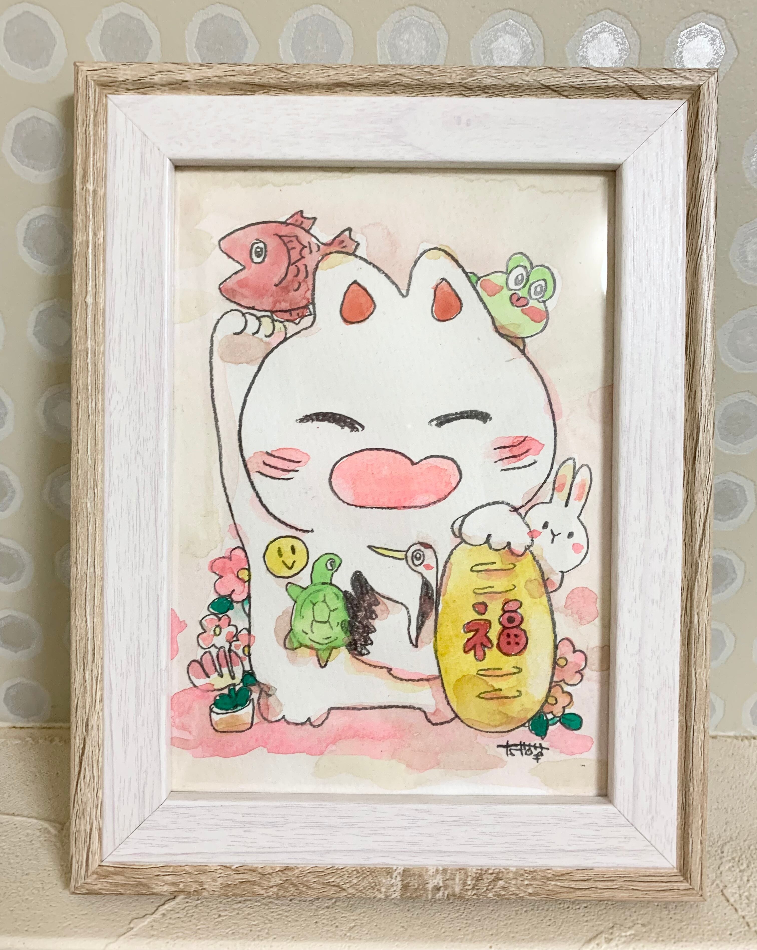 【額付き原画】笑顔招き猫ちゃん
