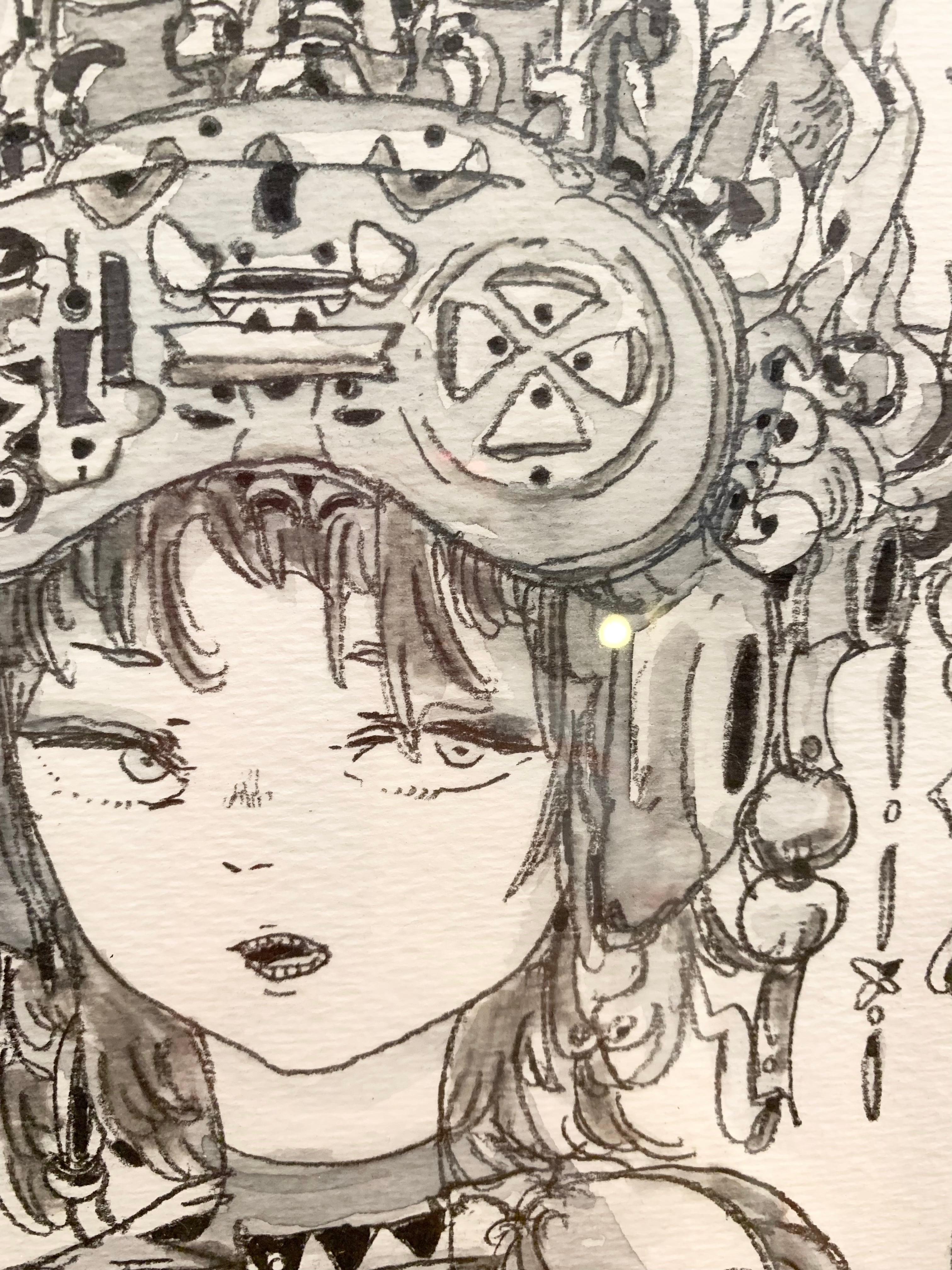 不思議な電磁波も霊波も感知しまくりコントロールヘッドガール 機械と民族衣装を混ぜたデザインのウェアを着ています
