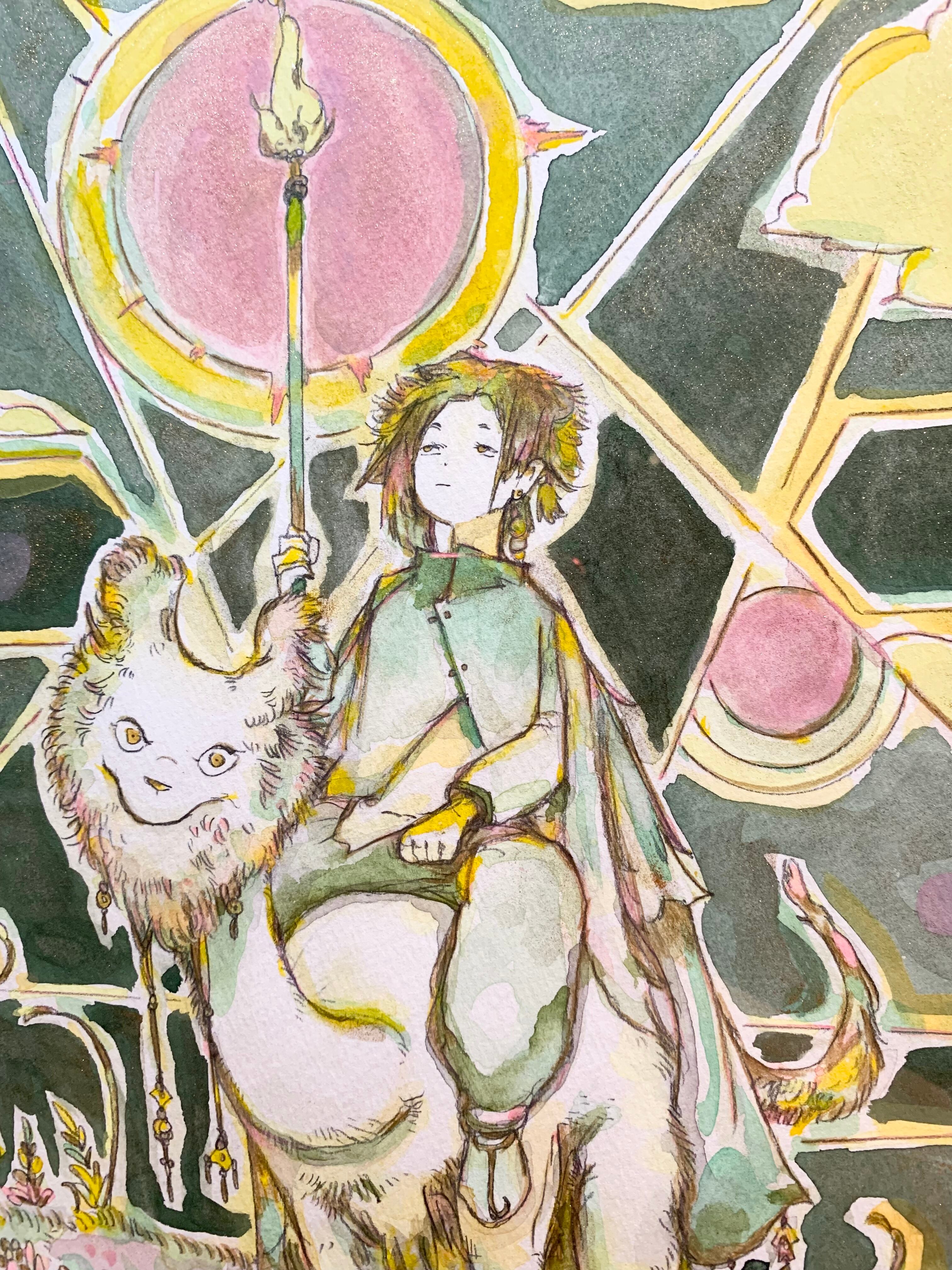 しかし表情は柔らかく威風堂々としています やり遂げた心の光のとして火を灯しています 何事もこの絵のような心構えでいたいなと思いこの絵を描きました